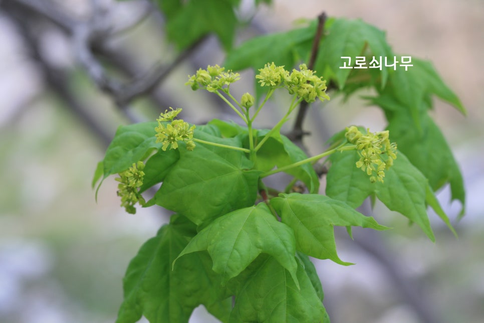 초봄에 채취하는 고로쇠 수액으로 더 유명한 고로쇠나무도 단풍나무과의 식물이다. 고로쇠나무의 잎은 5개로 갈라진다. 잎이 크게 크게 갈라져 세 갈래가 제일 먼저 눈에 띈다. 잎 간격이 좁은 편이며 오리발과 닮았다. 무엇보다 가장자리에 톱니가 없어 다른 잎들과 구별하기 쉽다.