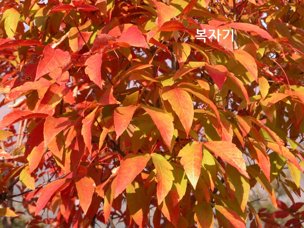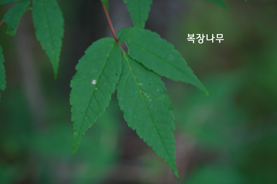 복자기와 복장나무는 이름부터 비슷하게 느껴지는데, 잎도 거의 비슷하게 생겼답니다. 보통의 단풍나무 잎과는 다르게 3개의 작은 잎으로 이루어져 있다. 복자기, 복장나무 잎을 구별하는 특징은 잎 가장자리 톱니에 있다. 복자기는 잎 위쪽에 큰 톱니가 있고, 복장나무는 잎 가장자리 전체에 톱니가 있다.