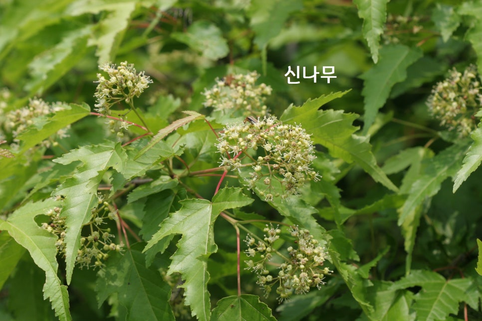 신나무는 고로쇠나무보다 수액을 훨씬 더 많이 채취할 수 있고, 성분도 우수하다고 해서 최근 인기가 많아졌다. 신나무의 잎은 전체적으로 길쭉하게 생겼고, 3갈래로 나누어졌다. 그리고 잎 가장자리로 불규칙한 겹톱니가 있다.