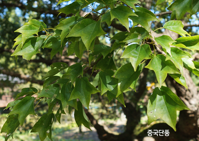 중국이 원산지인 중국단풍은 오리발은 연상케 하는 세 갈래의 잎을 가졌다. 어떻게 보면 튤립처럼 보이기도 한다. 잎 가장자리는 톱니 없이 밋밋하고 회갈색의 수피가 비늘처럼 세로로 벗겨지는 것이 특징이다.