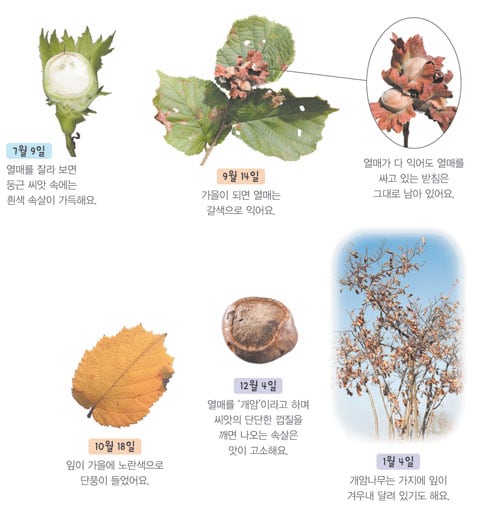 밤과 도토리는 가을 산에서 흔히 볼 수 있는 열매다. 밤과 도토리를 헷갈리는 이는 많지 않지만, 여기에 개암이 끼어들면 고개를 갸웃할지 모른다. 개암은 밤과 도토리의 중간쯤 되는 모습으로 처음 보는 이들을 헷갈리게 하기 때문이다.